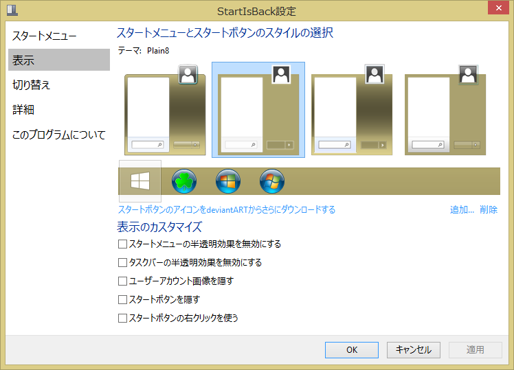(「スタートボタンの右クリックを使う」はチェックをしておけば8の良いところも残せます)