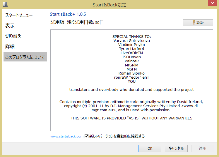 「StartIsBack」というソフトです。(30日試用可能 ダウンロードは