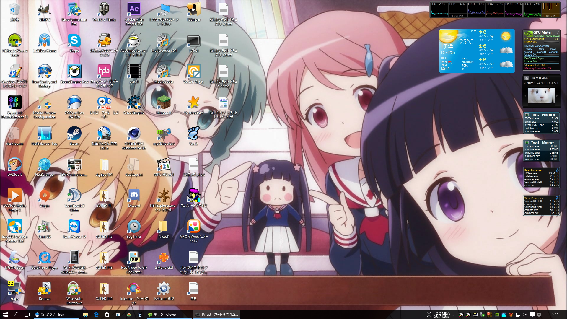 ガジェットはWin8時代のフリーソフトで引き続きWin7の状態を維持。