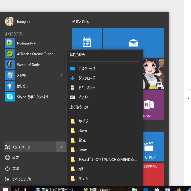 スタートメニューも真っ黒。