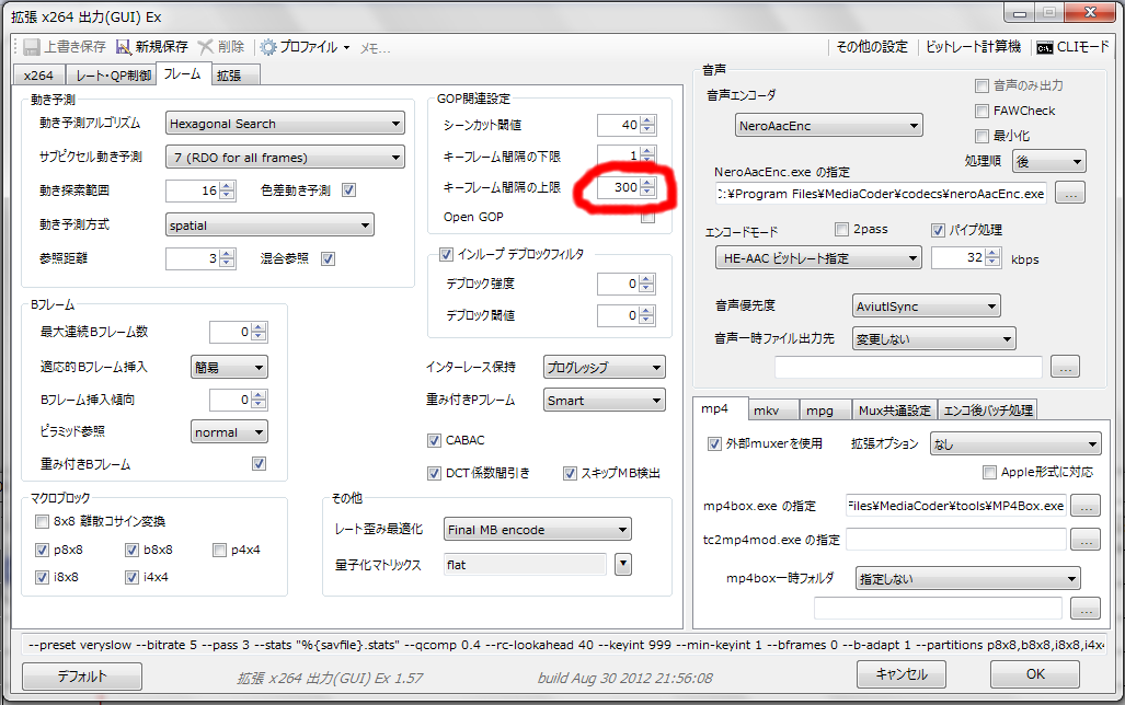 下の画像にあるようなキーフレーム間隔の上限(GOPとも呼ぶ?)という項目を