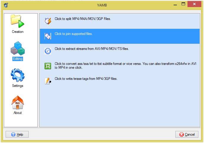 1.Yambを起動し、左側のEditingをクリック。