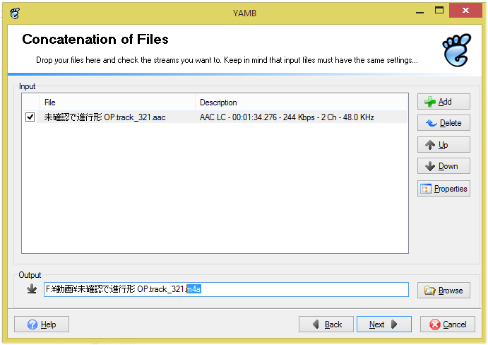 4.Output欄の出力名は拡張子をm4aにしておいた方が区別しやすい。