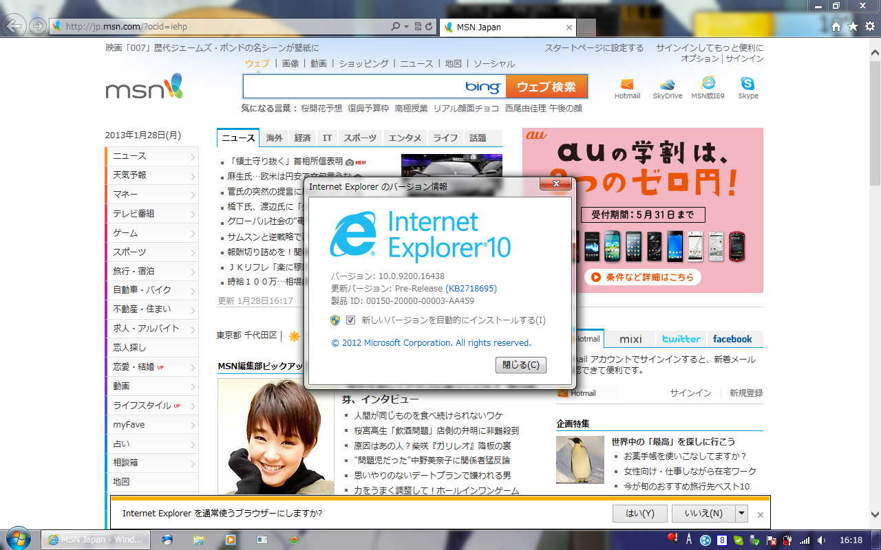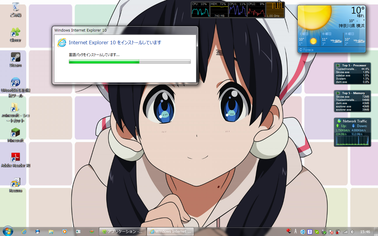 いつのまにかWin7用のIE10が出ていたのでDL、インストールしてみました。