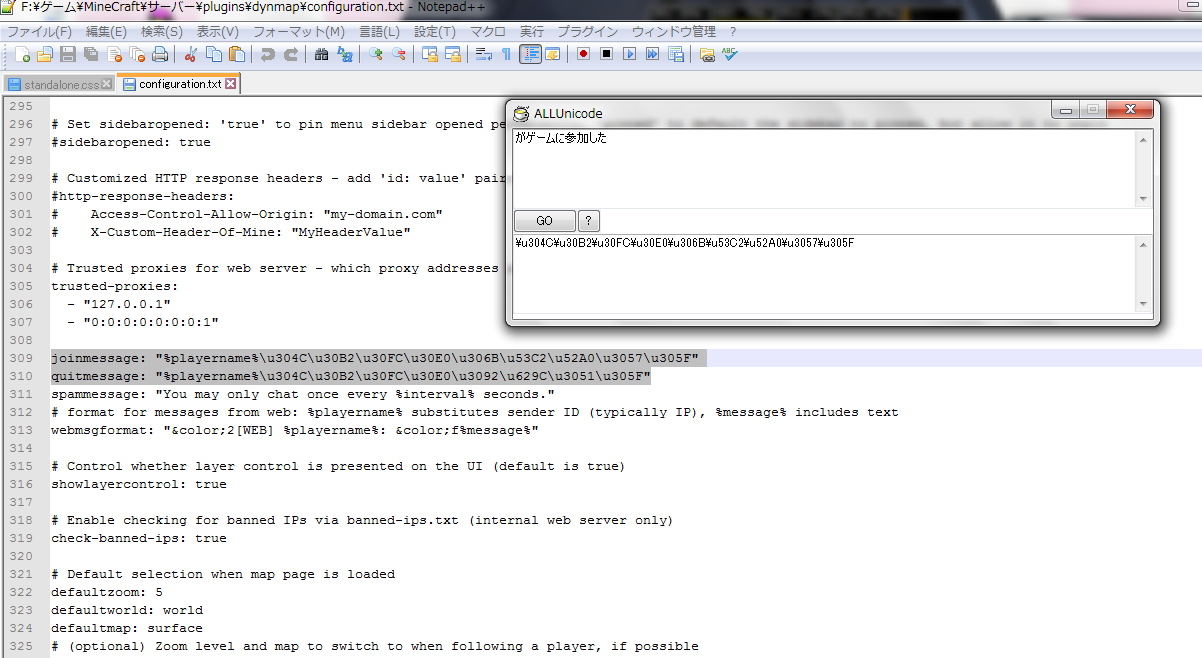 Dynmapの場合、日本語を書き込んで実行するとエラーになってしまいます。